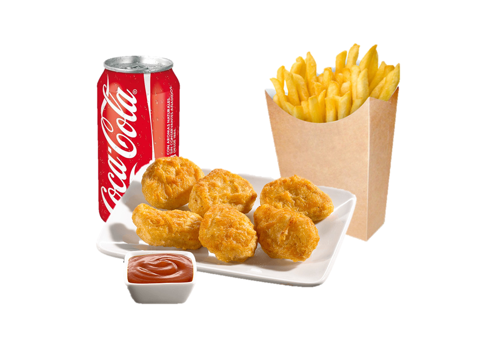 MENU NUGGET DE POLLO ( 7 UNIDADES ) PATATAS Y REFRESCOMENU NUGGET DE POLLO ( 7 UNIDADES ) PATATAS Y REFRESCO